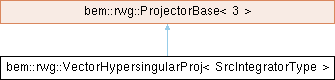 Inheritance diagram for bem::rwg::VectorHypersingularProj< SrcIntegratorType >:Class for computing the vector hypersingular potential projector.