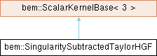 Inheritance diagram for bem::SingularitySubtractedTaylorHGF:Class for computing the scalar Green's function for homogeneous, linear, and isotropic materials, with the singular term(s) implicitly subtracted using the Taylor series expansion of the kernel.