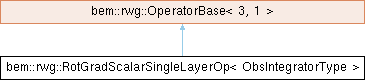 Inheritance diagram for bem::rwg::RotGradScalarSingleLayerOp< ObsIntegratorType >:Class for computing the rotationally-tested gradient of the scalar single-layer potential operator.