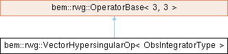 Inheritance diagram for bem::rwg::VectorHypersingularOp< ObsIntegratorType >:Class for computing the vector hypersingular operator.