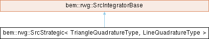 Inheritance diagram for bem::rwg::SrcStrategic< TriangleQuadratureType, LineQuadratureType >:Class integration over the source triangle for RWG-based BEM operators. The method of integration is chosen automatically and strategically based on mesh parameters, materials, and frequency.
