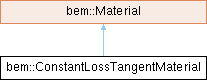 Inheritance diagram for bem::ConstantLossTangentMaterial:Class defining a material with a constant loss tangent and real permittivity and permeability.