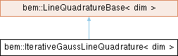 Inheritance diagram for bem::IterativeGaussLineQuadrature< dim >:Class for iterative Gaussian quadrature over a line segment.