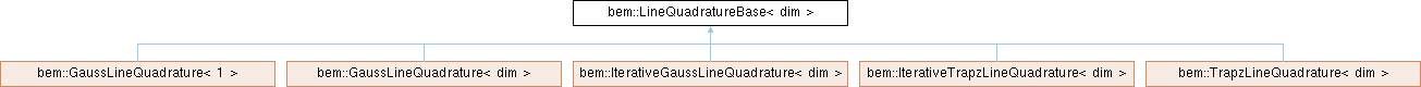 Inheritance diagram for bem::LineQuadratureBase< dim >:Base class for quadrature over a line segment.