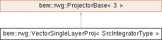 Inheritance diagram for bem::rwg::VectorSingleLayerProj< SrcIntegratorType >:Class for computing the vector single-layer potential projector.