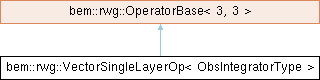 Inheritance diagram for bem::rwg::VectorSingleLayerOp< ObsIntegratorType >:Class for computing the vector single-layer potential operator.