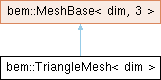Inheritance diagram for bem::TriangleMesh< dim >:Class defining a mesh with triangle elements.