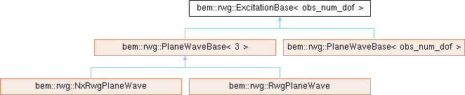 Inheritance diagram for bem::rwg::ExcitationBase< obs_num_dof >:Base class for generating excitation coefficients for RWG-based BEM systems.