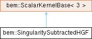 Inheritance diagram for bem::SingularitySubtractedHGF:Class for computing the scalar Green's function for homogeneous, linear, and isotropic materials, with the singular term(s) explicitly subtracted out.