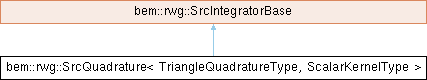 Inheritance diagram for bem::rwg::SrcQuadrature< TriangleQuadratureType, ScalarKernelType >:Class for quadrature over the source triangle for RWG-based BEM operators. Reference: