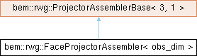 Inheritance diagram for bem::rwg::FaceProjectorAssembler< obs_dim >:Class for generating projector matrices for face-based pulse source functions.